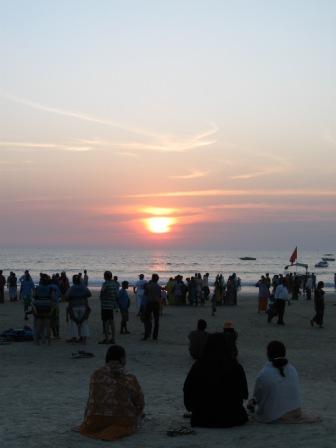 そのままコルヴァ・ビーチに滞在。 16日 朝食はホテルで。宿泊費に含まれている。パパイヤ・ジュース、コーヒー、小サイズの食パン2枚、ジャム。これでは量が足らない。海の家のようなビーチのレストランへ。オニオン・オムレツ、赤ワイン(注文したのは白ワイン)。オムレツは悪くない。赤ワインは怪しい味。格安なのか、何か混ぜているのか。トータル180ルピー。海の家価格か。 ランチは、目抜き通りからビーチへ入る手前のレストランKentucky。ビーフ・アッソード、フィッシュ・カレー・ライス、ビール。ビーフ・アッソードは、牛薄切り、唐辛子、たまねぎの炒め物。中華に近い。美味。スパイシーだが大丈夫かと聞かれたが、まったく問題なし。350ルピー。 夜は昨夜のSea Pearl Hotelと同じ通りにあるTate Sports Bar and Restaurantへ。客は欧米系が大多数。ビーフ・ステーキ、パン、キングフィッシャー・ビール。やわらかい牛肉にひさびさに出会う。やわらかいビーフとなると、インドに来てから初めて。赤身のジューシーなステーキに、デミグラス・ソースがかかり、たっぷりのポテト。ガーリック風味のパンもgood。トータル370ルピー。単価は昨夜の店よりは高いが、それでもデリーよりはずっと安いし、満足。 【コルヴァ・ビーチの風景】