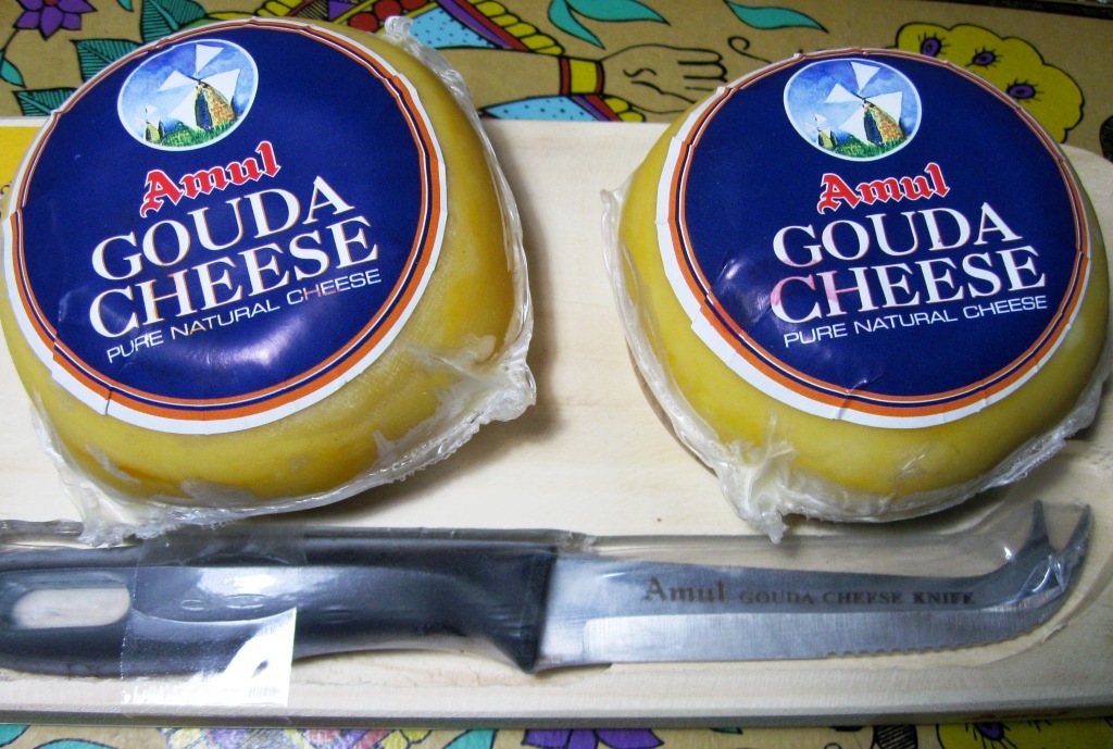 パニールが乳製品でありチーズの一種であるのは確かだが、味や使用法からしていわゆるチーズとはかなり違う。ある日本からの来客には、「乳製品でチーズの一種だけど、味や食感は豆腐」と説明したら納得してもらえた。 そういえばあるとき、中国人学生が、豆腐とは何かをインド人学生に尋ねられて「パニールです」即答していた。機能的観点からすれば間違ってはないが、でも何か違う。 ともかく、パニールではなく、いわゆる普通のチーズの話。インドでチーズは一般的でない。高級スーパーに行くと、高価格な輸入物が並んでいる。そんななか、比べると破格に安いインド産チーズ(パニールではなく)もある。これ。 インドでは乳製品メーカーとして有名なAmulのゴーダ・チーズ。写真は、チーズ2つ(各250g)とミニまな板とナイフがセット(Rs. 275)。こういう目を引くセットで顧客を開拓しようとしているのだろう。今回は付録につられて買ったが、前から何度も購入している。味は特徴の弱い地味なゴーダ・チーズ。しかし何といっても安い。 というわけで、今日はインド産チーズをつまみにインド産ワインをいただく。 Sula Vineyards Dindori Reserve Shiraz 2007 (Rs. 710) 苦味が非常に強い。でもさほど重くない。変わった味だ。