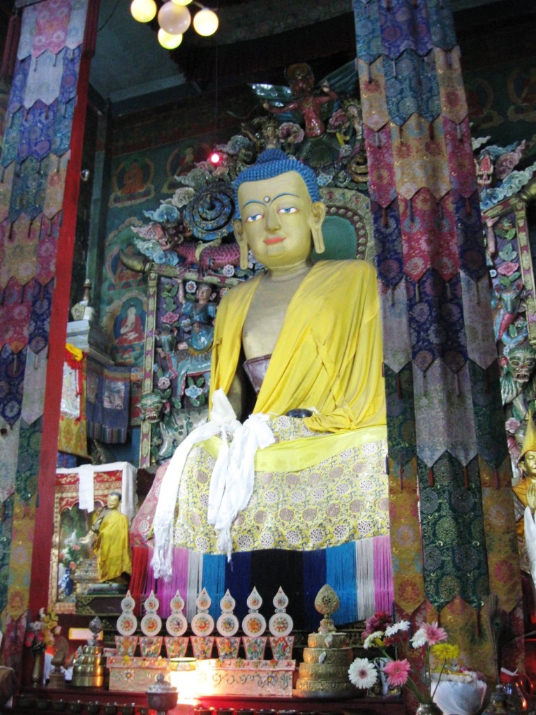 今日はディーワーリー。 ホーリーと並ぶインドの重要な祭日。もちろん文字通りのお祭り騒ぎが予想される。デリーでは、ほとんどの店が早く閉まってしまう。ガントクではどうなるのだろうか。多数を占めるネパーリーにとっても重要な祭だと聞くが。 朝9時。タクシー(Rs. 60)でエンチェイ・ゴンパ(Enchey Gompa)を訪れる。小さな僧院。雰囲気はいい。 到着時には多くのタクシーが止まっていたのだが、いざ帰ろうとすると、1台もいない。そこで、帰りは歩いて戻ろうなどと思ってしまった。「行きはタクシーを使ったほうが楽」という『歩き方』の1節にたぶらかされたからに他ならない。 だが、下り坂を歩くのはきつい。それに道もよくわからないし。なので、途中で断念して通りすがりのタクシーを拾い、次の目的地のロープウェイを目指す。王宮に近いタシ・リン(Tashi Ling)駅に行ってもらうように言ったのだが、そちらには入れないのだろうか、隣の駅(3つあるうちの真ん中)に連れてこられた(Rs. 60)。ちなみに、この運転手に目的地を告げたとき、「なんだ、ネパーリーじゃないのか!」と驚かれた。このように、外国人扱いされなかったことがこの旅で何度かある。自分が観光客だとわかり、運転手はルムテクのゴンパが良いと勧めてくれた。じゃあそこに連れていてくれと言うと、あっさり断られた。てっきりその運転手が自分をそこに連れて行きたいのかと思いきや、そうではなかった。単純に親切心から教えてくれただけだったのだ。 ロープウェイは往復Rs. 60。往復して同じ場所に戻ってくることが前提になっているらしく、そういう誘導をされる。なかなか良い景色。 ロープウェイ駅からMGロードはすぐ。歩いて移動。ダージリン・ヒマラヤ鉄道の予約を試みたが、できなかった。ここシッキムでは扱っていないとのことだった。明日に乗るつもり(ガントクからクルシャンまで車で行き、そこから電車)で考えていたが、再考を余儀なくされた。 ホテルに戻り、それから近くのタクシー・スタンドでルムテクのゴンパへ(往復Rs. 600)。片道1時間くらいかかっただろうか。ルムテクに入ってからの道はかなり険しい。 正式にはダルマ・チャクラ・センター(Dharma Chakra Centre)と言うらしい。かなり大規模な施設だ(入場Rs. 5)。中心の本堂は圧巻。リアル。また、多くの僧が修行を行っている。こうした人々の社会的意義について考えさせられる。 帰り道、チャーイやモモを扱う商店の前で、僧たちと1人のインド人観光客が議論を交わしていた。仏教にとっての神とは何か。神は何をしてくれるのか、など。自分はその脇で、ベジ・モモを食べながらしばらく議論に聞き入っていた。僧はヒンドゥーとの対比から説明しようとするのだが、ヒンドゥーの在り方についても僧とインド人の認識は一致せず、議論が進まない。また、ふとインド人が投げかける素朴な問いに、僧が答えに窮し、僧たちが答えをめぐって議論を始めることもあった。 インド人観光客の妻と子供は暇そうにしていた。 ちなみに、ここのベジ・モモはとてもおいしかった。自分の知っているモモの中では最高の味。ベジなのに、日本の餃子に近い味。 心に残る体験をして、ルムテクを去る。ガントクに戻り、MGロードの店で揚げたモモを食べて小腹を満たし、ホテルに戻る。シャワー。ここは良く水もお湯も出る。 騒がしいディーワーリーの夜が始まっていた。そこいら中で花火。騒がしい。しかし、店はほとんど開いている。デリーとは大違いだ。 MGロードのPub 25というバーに入った。ほとんど客はいなかったが、ディーワーリーの喧騒を見下ろせる窓際の席に向かうと、自分と同じようなことを考えたのだろう、他のも客が1人だけいた。北インド系の女性らしい風貌で、ずっと書き物をしていた。書くことを仕事にしている人だろうか。 デリーでは見たことのないビールを注文してみた。まず、ダンスバーグ(dansberg)。シッキム・オリジナルらしい。アルコール5%。温い。炭酸も弱く、パンチ力不足。サラリとした感じ。味は薄いが、甘い感じの後味が残る。米系みたいな感じ。インドで好まれるビールの正反対を行っているような気がする。 次は、ヒット(Hit)。スーパー・ストロング(アルコール8%)。これも温い。涼しい土地柄、冷たいビールを飲む習慣がないのだろう。いかにもストロング・ビールという、アルコールを足したような味。 つまみのチキン・ティッカは柔らかくておいしかった。それに気を良くして、調子にのってビーフ・ステーキを注文してしまったが、これは大失敗。肉が硬くて食えたものではなかった。 ホテルに戻り就寝。深夜まで花火の騒音…。