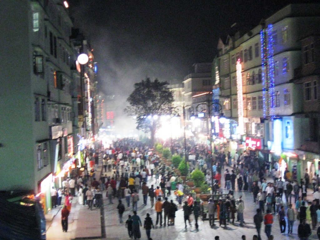 午前3時半、自分でセットしたタイマーで起床。タイガー・ヒル観光だ。ホテルの外に出て少し待つと、タクシー到着。出発。 運転手は「遅れてすまない」と言う。うそだ。遅れてなんかない。車は約束の時間より前に着いたが、自分がそれよりちょっと早くに外で待っていただけだ。そのことを指摘したら、笑っていた。こんなに腰の低い人々がインドにもいるのか。 タイガー・ヒルというのは、ヒマラヤ山脈を見る絶好のポイントとして観光地になっている丘。日の出前に到着するのが定番だ。見学料金がかかる。場所によって料金が違う(建物の外、中の低層、中の高層)。自分はRs. 40でスーパー・デラックス・ラウンジをチョイス。ここはチャーイつき。 ここダージリンは霧が多い土地。晴れ渡ったいい景色を望むことができるとは限らない。この日は、非常にいい日だったらしい。きれいに晴れ渡り、すばらしい景色を眺めることができた。 まだ暗い。 夜が開け始める。 まず、遠くの山々に日があたる。 日の出ともに歓声。 山々がよく見える。 肉眼でもはっきりと。 日の出。 多くの観光客。 屋根の上に載っている2人は反則だと思う。 大賑わい。 日が昇ると、観光客と車は一斉に丘を降りる。途中、イガ・チョリン・ゴンパ(Yiga Choling Gompa, ただ)と第3次印パ戦争の記念碑(War Memorial, Rs. 5)を見学してホテルに戻った。記念碑のほうは、山々と花を楽しむスポットとなっており、戦争の記録に関心を向ける人は少ない。 ホテルでは朝食が付いているとのことだったが、とにかく眠かったので、部屋に戻って寝てしまった。11時、チェック・アウト。結局シャワーは浴びなかった。あまりお湯も出なかったので。 ジープ・スタンドから、乗合ジープでシッキム州の州都ガントク(Gangtok)を目指す(Rs. 130)。 3列座席のジープ。最前列に4人(運転手含む)。中列5人(ただし1人子供で膝の上)。後列4人。計13人。無論、かなり厳しい。自分は後列右端。 12時ごろに出発して、途中1回の休憩をはさんで、4時ごろに到着した。シッキム州入境のポイントでは外国人の自分だけが事務所で手続き。許可証はすでに持っていた(ここでも申請可能)ので、10分ほどで終了した。他の客をさほど待たせずに済んだ。 道はスィリグリー=ダージリン間ほど過酷ではない。山道であるには違いないが、とくにシッキムに入ってからは道が比較的きれい。一度山を降りて、川沿いを進み、再び山に登るイメージ。一度標高がさがったところでは気温が上がった。それに伴って乗客は服装を調節(薄着→厚着→薄着→厚着)。 狭い車で長時間の移動に疲労困憊。早く宿を見つけたい。 ガントクは思いのほか、大きな街だ。私営ジープのターミナルは街の中心部から少し下(傾斜の厳しい土地にあるこの街では、「上」と「下」で方角を表す)にあった。そこからタクシーでも拾うつもりでいたが、通りすがりの一般の車が乗せてくれた。もちろんタダで。 ホテル探し。『歩き方』や『ロンプラ』掲載のNew Modern Central Lodgeを探したが、見つからなかった。近くのトラベル・ロッジTravel Lodgeという安宿にした(『ロンプラ』)掲載(Rs. 600)。部屋の見た目はきれいだが、機能的には所詮安宿。ドアはかなり強く閉めないとオートロックが作動しない。いくつもコンセントが壊れている。テレビも写りが悪い。でもホット・シャワーはちゃんと出た。シャワーを浴びて、一息。ここがデリーならちょっと休憩したいところだが、早く店が閉まってしまうと困るので、早速レストランへ。 ガントクはかなり栄えている街だ。中心にはベネトンなどのアパレル・ショップがならぶ。銀行のATMも多数。夜まで人通りが多い。この日はディーワーリー前日という特殊性もあるが、おそらく普段から賑わっている街なのだろう。さすがに、小国であったとはいえ、かつての首都だ。 ガントクの中心・MGロードのちょっと高そうなレストランへ(名前忘れた)。シッキムらしいメニューを期待したが、普通に中華と北インド料理のメニューだった。エビのフライをつまみに、ビール(いつものカールスバーグ)を2本飲んだ。 せっかくなので、主食はシッキムらしいものを食べたい。そこで、もう1件、ホテルに近い、タンゲリン(Tangerine、『ロンプラ』掲載)というレストランへ。モモを注文したが、品切れ…(モモは手間がかかるので品切れになったら終わり)。しかたなく、ラム酒とチキン・ヌードル(ただのインド風中華・チョウメン)。チョウメンの味は良かった。 ホテルに戻って就寝。