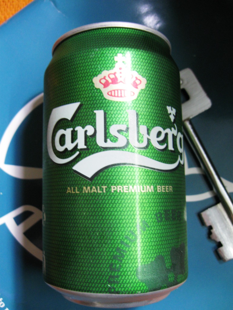 旅先のヴァーラーナスィーのレストランで、ウェイターの薦めに従って注文した缶ビール、カールスバーグ(Carlsberg)。新しくなったとかウェイターが言っていた。そのときとてもおいしく感じられ、強く印象に残っていた。