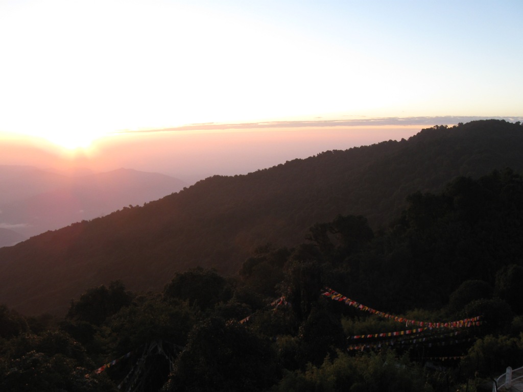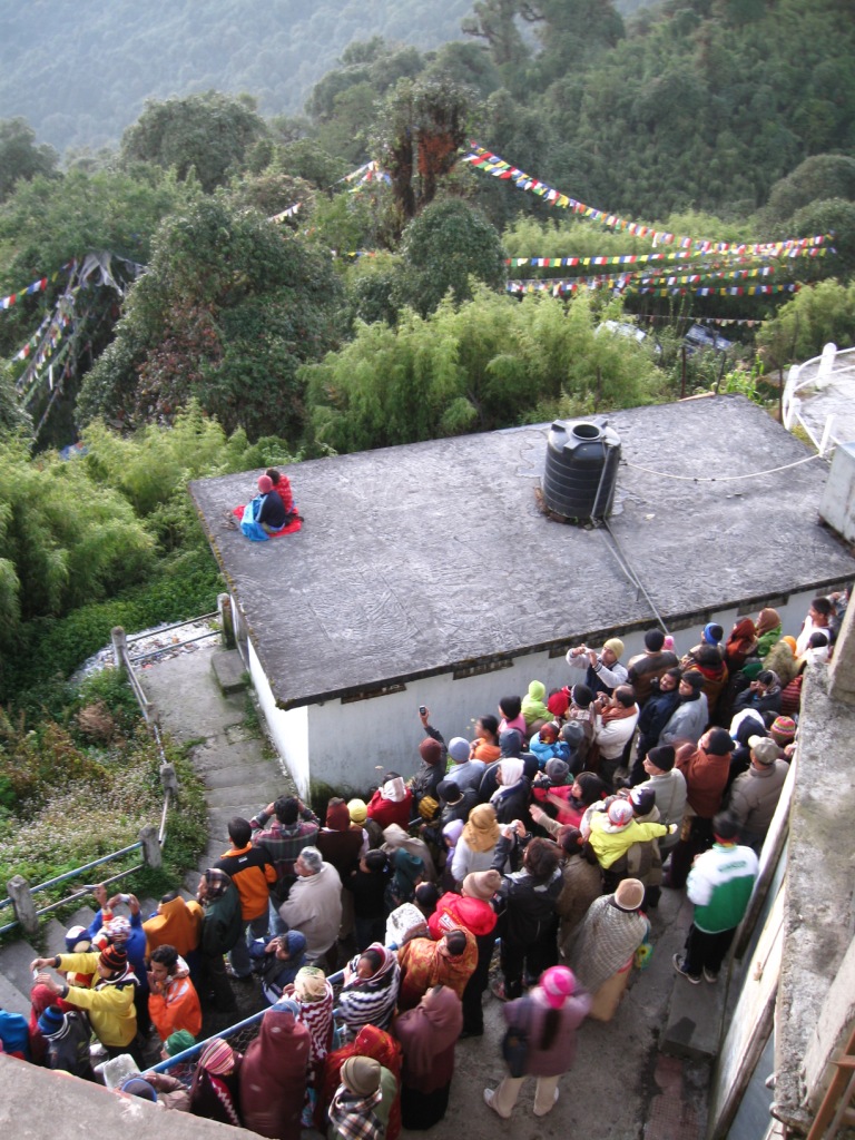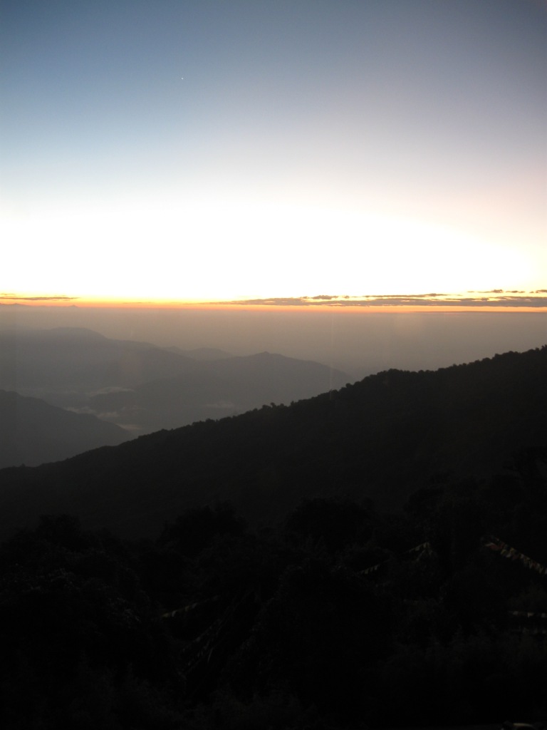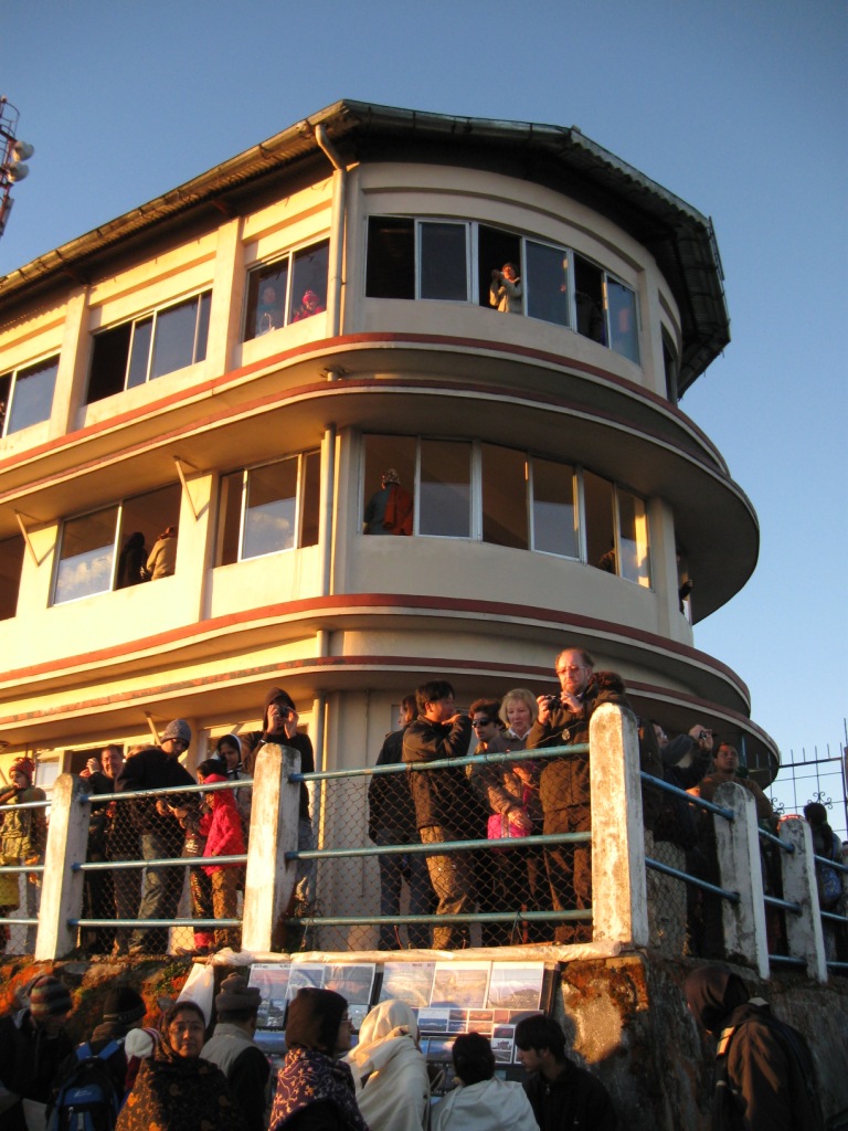 午前3時半、自分でセットしたタイマーで起床。タイガー・ヒル観光だ。ホテルの外に出て少し待つと、タクシー到着。出発。 運転手は「遅れてすまない」と言う。うそだ。遅れてなんかない。車は約束の時間より前に着いたが、自分がそれよりちょっと早くに外で待っていただけだ。そのことを指摘したら、笑っていた。こんなに腰の低い人々がインドにもいるのか。 タイガー・ヒルというのは、ヒマラヤ山脈を見る絶好のポイントとして観光地になっている丘。日の出前に到着するのが定番だ。見学料金がかかる。場所によって料金が違う(建物の外、中の低層、中の高層)。自分はRs. 40でスーパー・デラックス・ラウンジをチョイス。ここはチャーイつき。 ここダージリンは霧が多い土地。晴れ渡ったいい景色を望むことができるとは限らない。この日は、非常にいい日だったらしい。きれいに晴れ渡り、すばらしい景色を眺めることができた。 まだ暗い。 夜が開け始める。 まず、遠くの山々に日があたる。 日の出ともに歓声。 山々がよく見える。 肉眼でもはっきりと。 日の出。 多くの観光客。 屋根の上に載っている2人は反則だと思う。 大賑わい。 日が昇ると、観光客と車は一斉に丘を降りる。途中、イガ・チョリン・ゴンパ(Yiga Choling Gompa, ただ)と第3次印パ戦争の記念碑(War Memorial, Rs. 5)を見学してホテルに戻った。記念碑のほうは、山々と花を楽しむスポットとなっており、戦争の記録に関心を向ける人は少ない。 ホテルでは朝食が付いているとのことだったが、とにかく眠かったので、部屋に戻って寝てしまった。11時、チェック・アウト。結局シャワーは浴びなかった。あまりお湯も出なかったので。 ジープ・スタンドから、乗合ジープでシッキム州の州都ガントク(Gangtok)を目指す(Rs. 130)。 3列座席のジープ。最前列に4人(運転手含む)。中列5人(ただし1人子供で膝の上)。後列4人。計13人。無論、かなり厳しい。自分は後列右端。 12時ごろに出発して、途中1回の休憩をはさんで、4時ごろに到着した。シッキム州入境のポイントでは外国人の自分だけが事務所で手続き。許可証はすでに持っていた(ここでも申請可能)ので、10分ほどで終了した。他の客をさほど待たせずに済んだ。 道はスィリグリー=ダージリン間ほど過酷ではない。山道であるには違いないが、とくにシッキムに入ってからは道が比較的きれい。一度山を降りて、川沿いを進み、再び山に登るイメージ。一度標高がさがったところでは気温が上がった。それに伴って乗客は服装を調節(薄着→厚着→薄着→厚着)。 狭い車で長時間の移動に疲労困憊。早く宿を見つけたい。 ガントクは思いのほか、大きな街だ。私営ジープのターミナルは街の中心部から少し下(傾斜の厳しい土地にあるこの街では、「上」と「下」で方角を表す)にあった。そこからタクシーでも拾うつもりでいたが、通りすがりの一般の車が乗せてくれた。もちろんタダで。 ホテル探し。『歩き方』や『ロンプラ』掲載のNew Modern Central Lodgeを探したが、見つからなかった。近くのトラベル・ロッジTravel Lodgeという安宿にした(『ロンプラ』)掲載(Rs. 600)。部屋の見た目はきれいだが、機能的には所詮安宿。ドアはかなり強く閉めないとオートロックが作動しない。いくつもコンセントが壊れている。テレビも写りが悪い。でもホット・シャワーはちゃんと出た。シャワーを浴びて、一息。ここがデリーならちょっと休憩したいところだが、早く店が閉まってしまうと困るので、早速レストランへ。 ガントクはかなり栄えている街だ。中心にはベネトンなどのアパレル・ショップがならぶ。銀行のATMも多数。夜まで人通りが多い。この日はディーワーリー前日という特殊性もあるが、おそらく普段から賑わっている街なのだろう。さすがに、小国であったとはいえ、かつての首都だ。 ガントクの中心・MGロードのちょっと高そうなレストランへ(名前忘れた)。シッキムらしいメニューを期待したが、普通に中華と北インド料理のメニューだった。エビのフライをつまみに、ビール(いつものカールスバーグ)を2本飲んだ。 せっかくなので、主食はシッキムらしいものを食べたい。そこで、もう1件、ホテルに近い、タンゲリン(Tangerine、『ロンプラ』掲載)というレストランへ。モモを注文したが、品切れ…(モモは手間がかかるので品切れになったら終わり)。しかたなく、ラム酒とチキン・ヌードル(ただのインド風中華・チョウメン)。チョウメンの味は良かった。 ホテルに戻って就寝。 |
