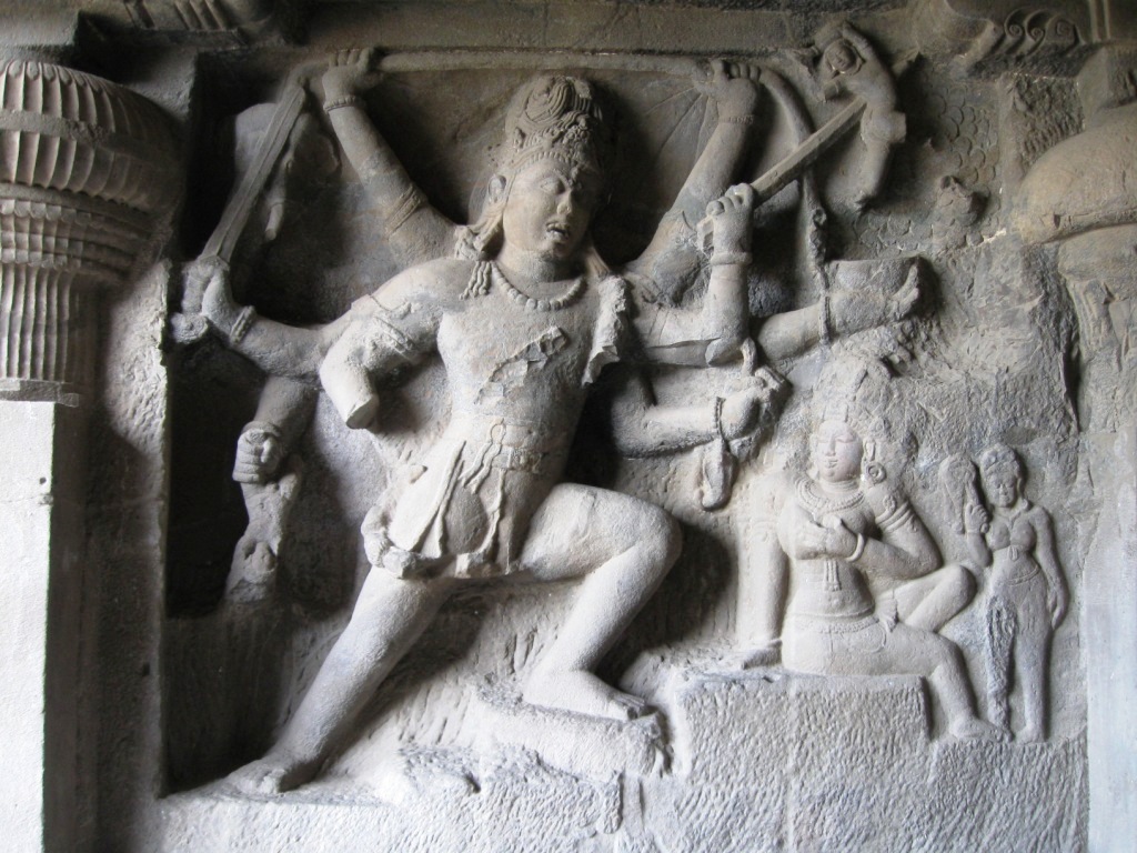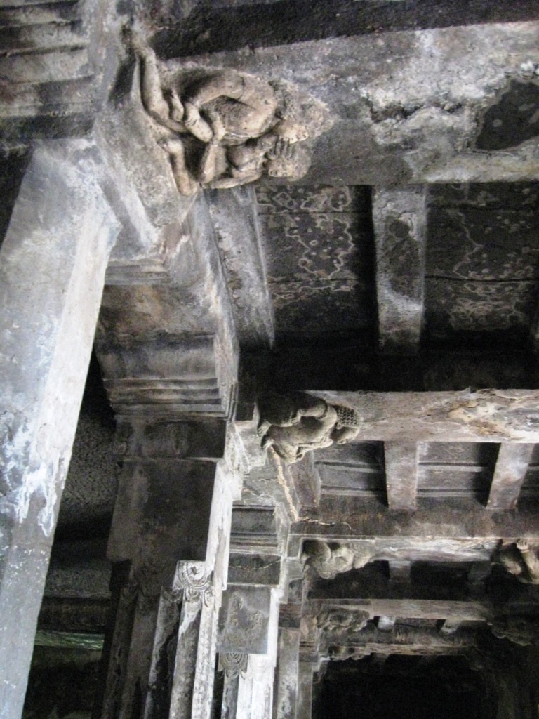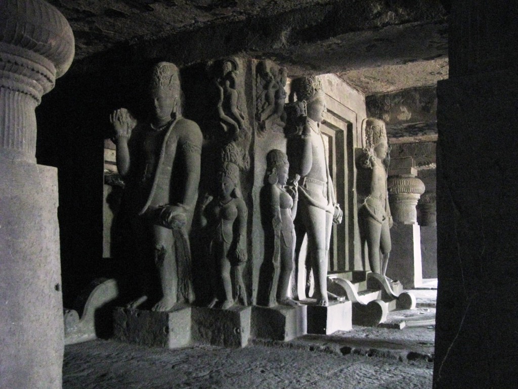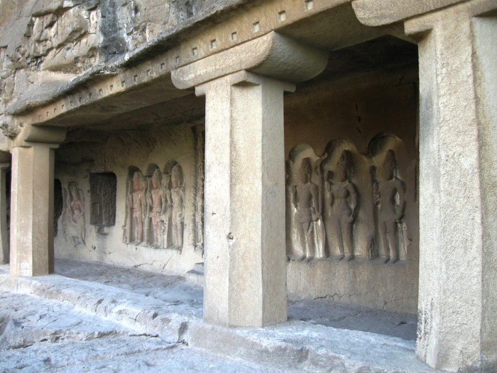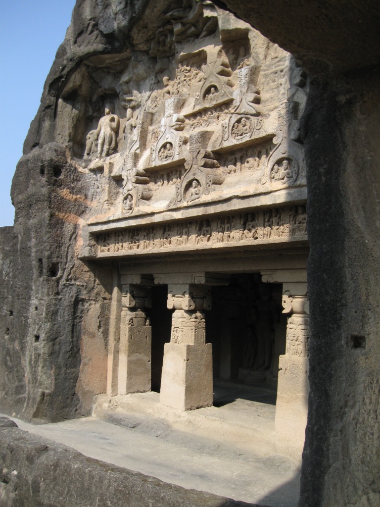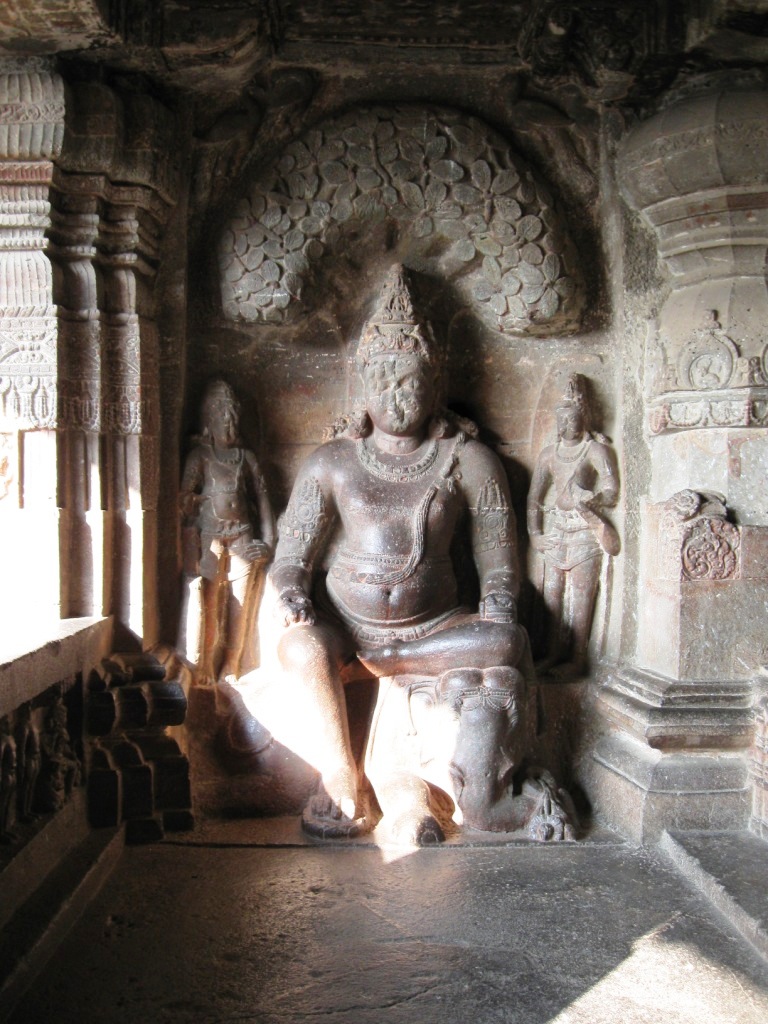 旅たちの朝を徹夜で迎えるのが習慣となりつつある。悪い習慣だ。今回は、やるべきことがあったのも確かだが、早朝のフライトのために未明に起床できる自信がなかったので、前日に昼寝をとり、夜は寝ないことにした。最近寝起きが悪いので。 午前3時に一仕事を仕上げてメールで送信し、旅の支度を始める。4時半ごろにタクシー(Radio Taxi)でやってきた今回同行のO氏と合流し、空港へ。 今回のフライトは、5:40デリー発7:45アウランガーバード着のJet Lite便。フライトの1時間ちょっと前には空港に到着した。チェックインカウンターはやや混雑していたが、セキュリティ・チェックはガラガラで、余裕をもって搭乗準備完了。Costa Caféで軽めの朝食にマフィンとカプチーノ。 出発はほぼ定刻。機内の飲食は有料。サンドウィッチを食べたが、非常にまずかった。 到着もほぼ定刻。アウランガーバード空港。到着したその機体以外に航空機が見当たらないような小規模空港。ターミナルはそこそこきれい。機能と比較して無駄に大きなターミナルは、アムリトサルを連想させる。 気温30度弱。それほど暑く感じない。下はデニム、上は長袖のシャツを着ていたが、それでちょうどいいくらい。 ターミナルで声をかけてきた旅行会社のおじさんに従い、8時間Rs. 950で車をチャーター。市内とエローラ観光込み。名刺を受け取ってから気づいたのだが、『歩き方』や『ロンプラ』オススメのClassic Travelという会社だった。ちなみに、市内行きだけならRs. 200とのこと。 空港から1時間弱。エローラ石窟群に到着。都市間を結ぶ主要路線の路面はそれなりにちゃんと整備されていた。辺りは思いのほか緑が多い。農業はあまり盛んな感じはないが、平地には草や木が生い茂り、ヤギや牛の放牧や、場所によっては綿花の栽培。台地には草が茂り、ポツポツと木もある。ゆったりとそびえる岩盤台地には、平行に地層が走る。街道沿いの樹木は、デリー近郊の比較的新しいそれとは違い、かなり年季が入っている。 エローラは6世紀から9世紀ごろにかけて、岩盤をくりぬいて作られた石窟。全34。便宜上番号が振られており、1から12が仏教、13から29がヒンドゥー教、30から34がジャイナ教というそれぞれに異なった宗教の遺跡となっているらしい。見た実感として、そうした違いの重要性は正直なところよくわからない。 入場料はRs. 250(外国人プライス)。初めにジャイナ教石窟群(34→30)を見て、それから車で移動し、残り(ヒンドゥーと仏教、29→1)は一気にまとめて見た。車で石窟のすぐ近くまで行けるとはいえ、かなりの距離を歩くことになる。暑い時期には厳しいだろう。 第34窟からスタート。