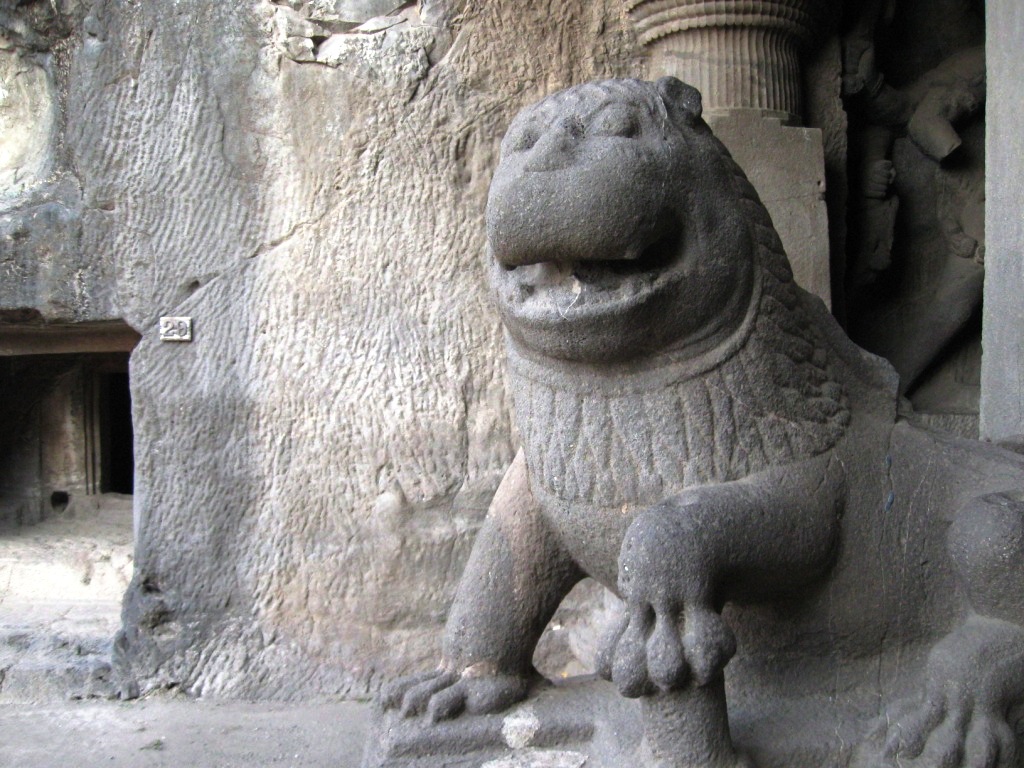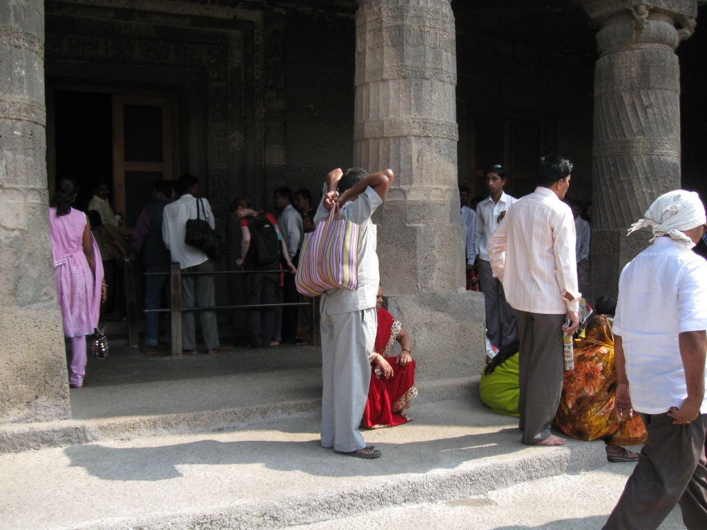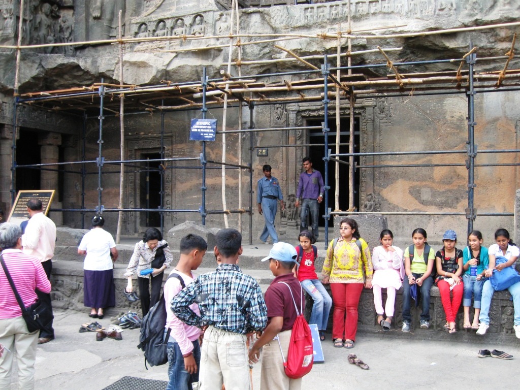 まずはジャイナ教。 狛犬? このあたり(第29窟)からヒンドゥー。おそらく。 遊泳・沐浴禁止。 と言いたかったんだと思う。 ただし綴り(Sweeming?)が残念。 エローラ石窟群の目玉、第16窟Kailasanatha寺院の入り口。 ここはさすがに人が多い。 ここまで第16窟。 このあたりで、実はカメラの電池がご臨終。予備もあったが車の中。売り子もいたが、Rs. 40の電池をRs. 150でふっかけてきたので買わなかった。「それは通常Rs. 50、今は(キャンペーン中で)Rs. 40の電池だろ」と言ったが、Rs. 70までしか下げてこなかった。電池はしばらくあとにちょっとだけ復活。