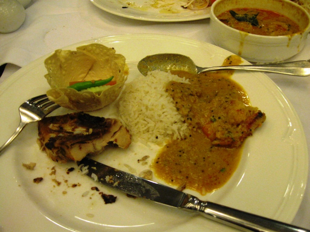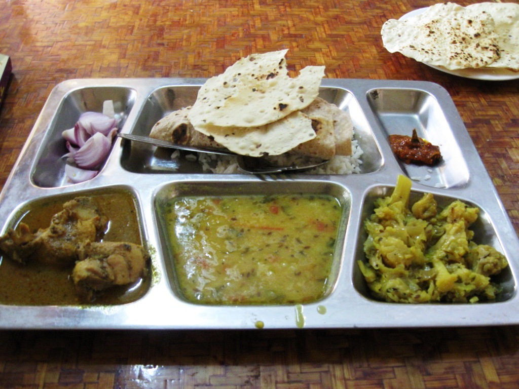 7時にチェック・アウト。とはいっても鍵を渡しただけ。結局パスポートのチェックはなかった。 今日は鉄道で移動。それだけで終わってしまうだろう。 昨夜と同じレストランGlenary’sのカフェの方へ。まだ店内で食べることはできなかったので、マフィンをテイクアウト。このとき、また昨夜の日本人一家と遭遇した。 朝食を食べ損ねた分、早く駅に着いてしまった。すぐ隣にゴンパがあったので、そちらを見学。 しばらく駅で出発準備の様子を眺めてから、乗車。9時20分発。 客車は3車両のみ。ファースト・クラスが1つ。他はセカンド・クラス。ファースト・クラスは3列座席で、スペースにゆとりがある。 交通量の多い車道と共有になっている部分も多い線路なので、車に遮られて進めないのではないかと懸念していたが、思いのほかちゃんと進む。車のせいで停止することはほとんどない。 また、長時間の停車はない。駅では唯一、クルシャンで5分間の停車。なので、途中で食料を購入するのは容易でない。 グーム(Ghoom)やクルシャンで降りる客が多い。 途中、雨が降っていた。かなり強く。 到着は午後5時20分。およそ8時間の長旅であった。ゆったりと、変わりゆく景色を楽しむことができた。しかしさすがに疲れる。 駅からオート・リクシャーを拾って、シッキム州政府事務所の前で降ろしてもらう。入境許可証を得た際、この周辺がホテル街なのを記憶していたからだ。スィリグリーに関してはほとんど情報がないので、冒険はしない。 マニラ(Manila)というホテルに決めた(デラックス、ACなしでRs. 850)。大通り沿いで、きれいな外装。中はさほどでもなく、日本のビジネスホテルくらいのランク。かなり混んでいた。 近くのバーに繰り出す。ビールはデリーでもお馴染みのキングフィッシャー・ストロングしか置いてなかった。フィッシュ・フライとパニール・フライをつまみに。パニール・フライは、文字通りのパニールの素揚げ。何の味付けもないので、塩を持ってきてもらった。するとその塩はブラック・ソルト(岩塩を砕いたもの)で、まろやかでおいしかった。 その後、ホテルのレストランへ。いろいろ注文したのだが(またビールも)、ここで衝撃的だったのは、ダール・マハラジャ(Dal Maharaja)。写真左。とにかく美味い。ダールという概念に収まらない。アムリトサルで食べたブレイン・カレーを彷彿とさせる味だが、あれは羊の脳を使っている肉料理なので、そういう味になるのは納得できる。しかし今回はダール(豆)だ。なぜダールでこの味になるのか。クリーミーで、旨みがあふれる。さっぱりわからない。 この旅最後の夜はこうして終わった。 10月20日(火) この日はもう帰るだけ。 朝、ホテルで朝食をとってからチェック・アウト。レセプションでオート・リクシャーの相場を聞いてから、オート・リクシャーを拾いバグドグラ空港へ。 この空港の警備は非常に厳しい。インド国内ではこれまで経験したことのない厳重さだ。おそらくは、ここが軍と共用されているためであろう。そのため、セキュリティ・チェックは時間がかかる。ターミナルのロビーから滑走路を撮影することも厳しく禁じられている。 帰りの飛行機は日本の団体客と一緒だった。今回のフライトは経由便から直行便に変更されていたのだが、彼らはそれを知らなかったようだ。団体客の添乗員が、なかなか経由地に到着しないことに心配してフライト・アテンダントに聞き、それでようやく気付いたらしい。自分は1週間ほど前に連絡を受けていたが。 空港からはタクシー(Easy Cabs)で帰った(Rs. 245)。 この旅は移動がいちいち大変で、非常に消耗したが、行ってよかった。時期もよかった。無理をして行った甲斐があったというものだ。