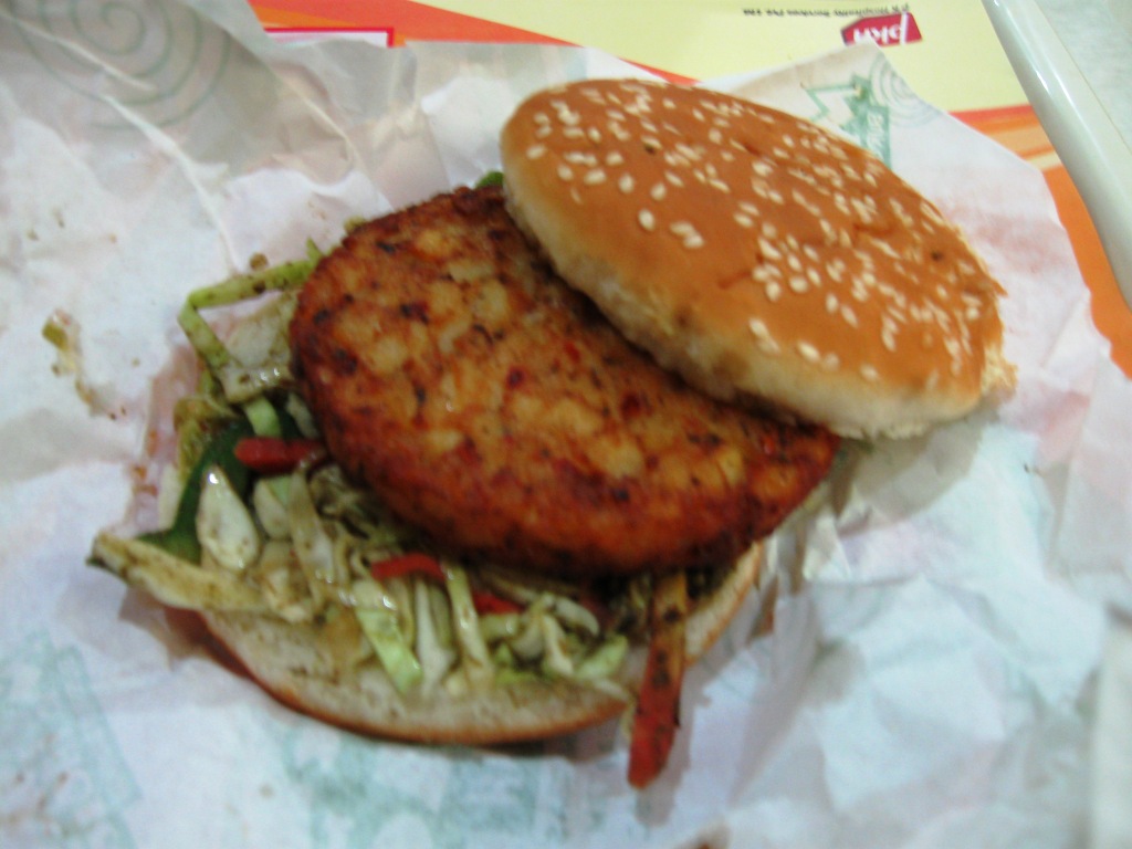 金曜日は授業が3コマあり(9:30-11:00、11:30-1:00、2;30-4:00)、1週間の中で最も忙しい。それらの授業が終わってから空港に向かうスケジュールを組んだのだが、午後の授業が延びた場合に途中で退席しなければならなくなることを懸念していた。もちろん申し出れば退席させてくれるが、できればそれは避けたいと思っていた。授業を休んで旅行、では何をするためにインドにわざわざ来ているのかわからなくなってしまうからだ。 金曜日の午後の授業は本来2:30に始まり4:00に終わる。しかし、いつものパターンでは、3:00ごろに始まり5:30ごろまで続く。それ以上延びるようなら途中で退出しなければならないと思っていた。だが、この日は幸い早めに終わった。事の経緯は不明だが、最近各教室に設置されたプロジェクターとスクリーンを利用して、教室で映画を見ようという話になっていた。しかも、研究に関するものではなく、普通の娯楽映画。そのため、授業は早めに(それでも4:30だったが)終わった。映画鑑賞は辞退して、自室に戻って旅支度を急いだ。荷造りは一通り済ませてあったが、防犯対策をしっかり施す。 午後6時、JNU正門を出発。空港までオート・リクシャーでRs. 100。旅先ではなくデリーの寒さ対策に長そでのフリースを着てきたが、それほど寒くない。今回の旅先で必要ないことは明らか。無駄な荷物を抱えてしまったと後悔。 まもなく空港着。国内線の1Bターミナル。すぐ隣で新ターミナルの建設が進んでいる。建設現場では、明らかに過剰な数の労働者が作業を行っている。現行のターミナルは、台頭する大国と言われるインドの首都の空港としては大変残念なもの。7:50のフライトまで時間があったため、構内のマク・インディアンMc Indianというファースト・フード店で休息。ベジのムンバイー・マサーラー・バーガーMumbai Masala Burgerを注文。スパイスでしっかり味付けされた野菜炒めと平たいポテト・コロッケが入っているバーガー。ちょっとスパイスがきついが、とてもおいしかった。だが、店員のサーヴィスは悪かった。コーラ、ポテトとセットでRs. 90くらいだったと思う。 ムンバイー・マサーラー・バーガー