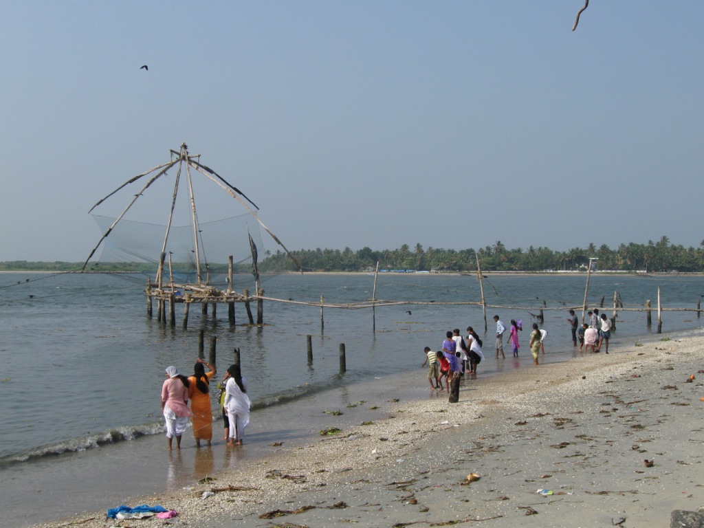 ターミナルでオートを拾い、予約してあるシーロード・ホテルSealord Hotelを目指す。街に蚊が多いのはさすが南国といったところか。すぐにホテル着。レセプションで予約を確認すると、またも取れていなかった。が、部屋は空いていたので、その場でチェック・イン。南インドでは24時間制のホテル(チェック・インから24時間利用できる。特定の時刻ではなく)が多いと聞いていたが、ここは通常のチェック・イン、チェック・アウトの時刻が定められたタイプであった。ということは、朝にチェック・インして翌朝までだと2日分を支払わねばならないことになるはずだが、1日分で構わないとのことであった。しかも、翌日のチェック・アウトも通常の昼のチェック・アウト時刻でよいとのこと。これは助かった。部屋も値段の割に広くて快適。テレビも冷蔵庫もホット・シャワーも完備。朝食も付いている。蚊もいない。さすが『歩き方』の「おすすめNo. 1」。難点は、ホット・シャワーの温度調節ができず、熱すぎることぐらいか。 さっそくホテルで朝食。ビュッフェ形式。パンやシリアルといった通常の洋食系もあるが、ここはやはり南インド料理をチョイス。アッパムappamというパンをココナッツ系のスープにつけて食すのがとてもよかった。 部屋に戻り、昼まで仮眠。こちらが熟睡している間に、早めに起きたO氏がKTDCで確認をしてきてくれた。なんと、今日も明日も催行はないと言う。困った。とりあえず、今日の午後は市内観光をすることにした。そのまえに、昼食も同じホテルのレストランで。 コーチン市内の主な見どころは、島になっているフォート・コーチンFort Cochin地区にある。ホテルから徒歩でボート乗り場へ。そこからボートに乗り、フォート・コーチンへ、Rs. 2.50。安い。 ボート乗り場を出てすぐの骨董品店で自転車を借りた。1時間Rs. 6。チャイニーズ・フィッシング・ネットChinese fishing net、聖フランシス教会Church of St. Francis、シナゴーグSynagogueを順次見学。聖フランシス教会は閉まっており、入れなかった。シナゴーグは危うく通り過ぎて見落とすところであり、さらに閉館時間ぎりぎりであったがなんとか見学できた。自転車でコーチンの風を味わいながらゆっくり見てまわれたのはなかなか良かった。 じっくりフォート・コーチンを堪能したのち、ボートを経て、途中買い物をしてから、ホテルへ戻る。ディナーもホテル、ただし今度は屋上のレストランで。ビーフを注文してみたが、いまいちだった。その後、近くのスイーツ・ショップ、バーへのハシゴを計画したが、スイーツは閉店してしまっていたため入れず、バーで少しゆっくりしてから、ホテルに戻り就寝。