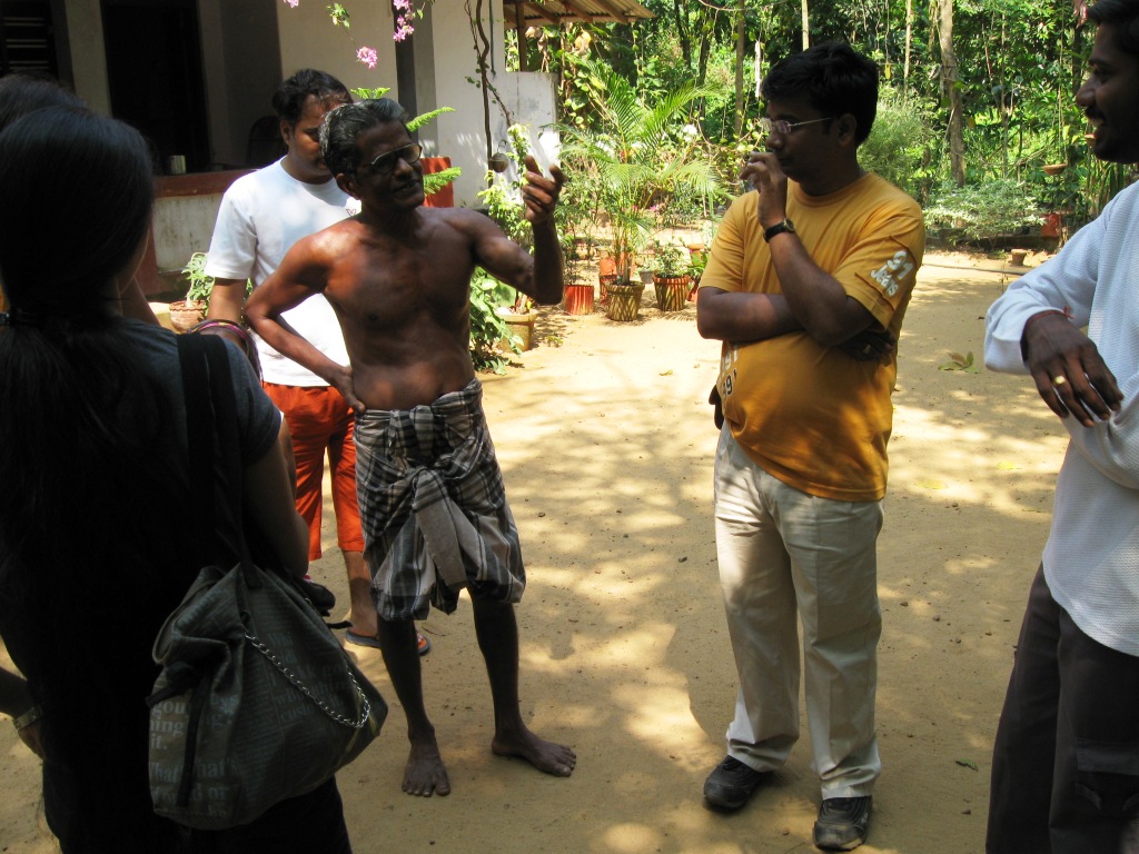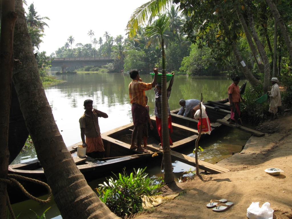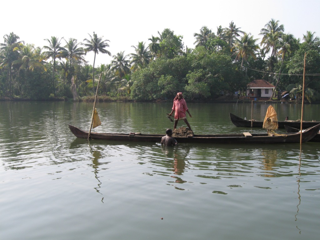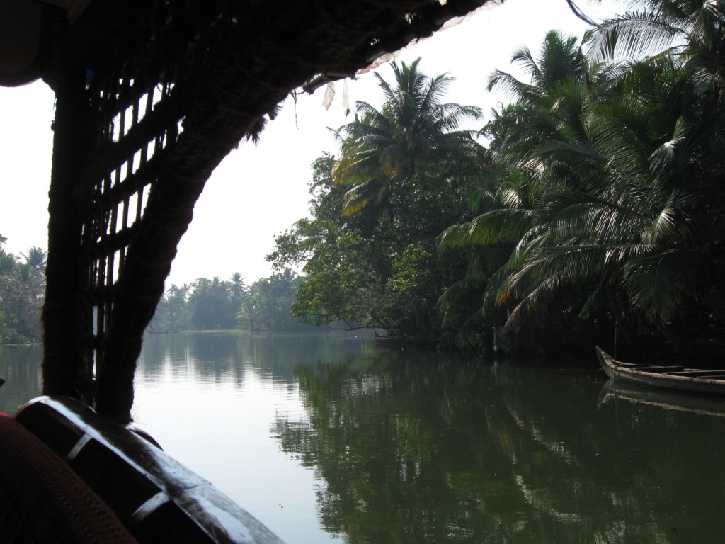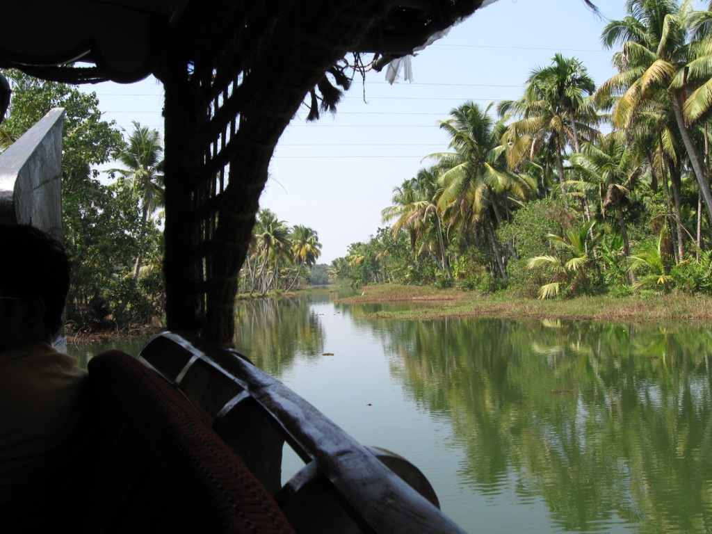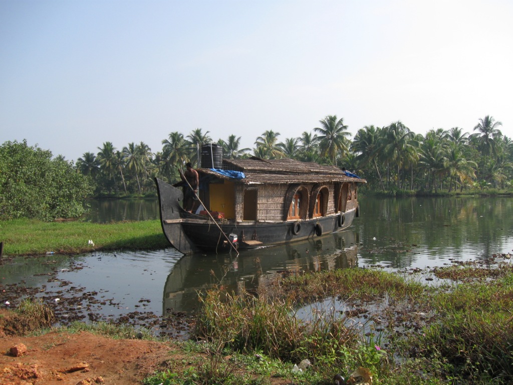 旅行最終日。前日に予定していたバックウォーター・ツアーであったが、KTDCのツアーは参加できなかった。そこでホテルのレセプションで相談したところ、ホテルがツアーの手配をしてくれるということだったので、お願いして、この日の朝に手配してもらった。半日ツアーでRs. 550。 ケーララ州のバックウォーターについて(Wikipedia) ホテルで朝食をとり、チェック・アウトを済ませる。朝8時に来るように言われ、きっちりその時間に準備を完了させていたが、このホテルから参加するもう1組を待たされた。30分遅れで現れたのは、朝食を隣の席でとっていたインド人客一家。朝食時はなぜか旦那1人だったが、奥さんと子供も一緒に現れた。計5人の客をタクシー1台に詰め込んで出発。 途中、もう1家族と合流して、少し大きな車に移る。ここで合流したのも、夫婦に子供1人のインド人家族。しかも両家族ともムンバイーから来たらしい。てっきりこういうツアーは欧米系観光客のものと予想していたが、金持ちインド人2家族と自分たちだけという、思いがけない編成となった。 ホテルから約1時間。ずっと街並みが続いており、バックウォーターがあるような雰囲気ではなかったが、少し道沿いの構造物が少なくなったところで脇道に入ると、そこはすでにバックウォーターの世界であった。そこに小型ボートが停泊していた。ガイドが出迎えてくれた。他に客はおらず、この編成のまま、ツアーはスタートした。ボートは一見しておんぼろに見えたが中の設備はしっかり。手洗いも完備。宿泊も可能なようだ。 ガイドは地元の青年。マハートマー・ガンディー大(Mahatma Gandhi University)で政治学を学び、卒業したという。流暢な英語で案内をしてくれた。ガイドとしてはキャリアが浅いらしく、初々しい感じではあったが、熱心に、丁寧にいろいろと説明してくれた。 流れの無いように見える穏やかな川を、ボートで進む。川では地元の人たちが川底の砂を取っていた。建設に使うものらしい。川底から採取し、洗う。ガイド曰く、午前中に行うこの仕事だけで、1日Rs. 500もの収入が得られるとのこと。 途中、停泊して川岸の店に立ち寄る。チャーイとバナナ1本。Rs. 6。店の前ではタピオカを栽培していた。 さらに川を進み、村の暮らしの見学へ。そこにいたのは、観光ズレしていない普通の人々。観光地でありがちな、やたら愛想がよく、ものを売りつける人や、ペンをねだる子供もいない。ちなみに、このころにはツアー参加の2人の子供同士が仲良くなっていた。 村の見学を終えて、ボートは出発点近くに戻る。ここでランチをとり、午後は小さなボートに乗り換えてもっと深くへ、というツアーなのだが、自分たちは半日コースのため、ここで離脱。車に乗り、ホテルへ帰る。チップも何も要求されなかった。 ホテル前に戻ってきた。空港に向かうまでまだしばらく時間があったので、昨日断念したスイーツのお店へ(Oven)。ホテルから徒歩1分。なかなかいい味だったので、調子に乗ってケーキを2つも食べてしまった。 名残惜しいが、いざ空港へ。タイミング悪くタクシーを拾えなかったため、ホテルのレセプションで呼んでもらう。空港までRs. 500。かなり飛ばしたが、40分くらいはかかった。市街からはかなり離れている。空港前にかわいい建物があったので、レストランか何かと思ったが、実は警察署であった。写真なし。 帰りの航空機はキングフィッシャー利用。まずはコーチンからタミル・ナードゥ州Tamil NaduのチェンナイChennaiへ飛び、そこで乗り換え。コーチンでの搭乗時、またドライバーが問題となった。今度はダメだと言う。係員は荷物をチェック・イン(預け)しろと言うが、面倒だったので、ドライバーを諦めた。チェンナイからアーンドラ・プラデーシュ州Andhra PradeshのハイデラバードHyderabadを経由し(乗り換えなし)、デリーへ。チェンナイでは空港を出ずに、空港内のレストランで休憩だけした。 今回のキングフィッシャーのフライトは、前回のゴア行きのときに比べて印象が悪い。まず、機体が古く、各座席のモニターがなかった。しかもリクライニングができない。行きのジェットは最後尾座席だからであったが、今度は全座席。これは苦痛。計3回のフライトであったが、機内食はいずれも似たような軽食。トータルでは長時間の移動なのだが、しっかりとした食事が1度もでなかった。 午後11時過ぎ、デリー着。空港からはプリペイド・タクシー(Rs. 180)で帰宅した。 かくして、今回のカルナータカ・ケーララ遠征は無事終了した。 行ってよかったということは疑いないが、若干忙しすぎたきらいがある。マイソールにしても、バックウォーターにしても、もう少しゆったりしたかった。それに、今回はトラブルなく順調すぎるほど順調に全日程を無事消化できたが、これで途中にトラブルが何かあれば大変だ。とりわけ今回はゆっくりとした時の流れる南インドの旅であり、それにふさわしいゆとりある旅
