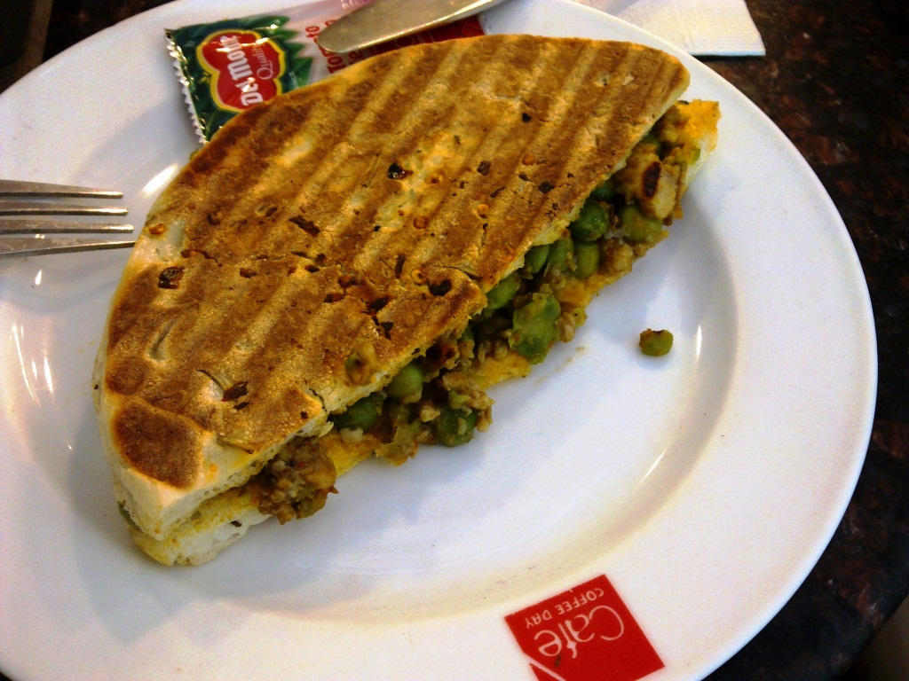 「今から行ってもいいですか。近くに住んでるから、30分で行きます」 航空券代金の集金だ。 しかしまた、いきなりすぎやしないか。友人宅に遊びに行くのならともかく、もうちょっと何とかならんものか。急ぎの局面であることは確かなので、仕方ない部分もあるが、せめて前日に連絡がほしい。 その後、ちゃんと30分後に来た。偉い。さすがは日本人御用達の旅行会社だ。 しかし現れたのは、ハタチくらいのあんちゃん。この子でほんとうにいいのか? どうぞとか言ってないのに、さっさと入ってきてベッドに座っているし。おいおい。お前はクラスメートか。否、自分のクラスメートはもっと遠慮がちだった。 代金を渡す。札束(高額紙幣がないので、枚数が多くなってしまう)。携帯を取り出して金額を確認してから、不安そうな面持ちで、お金を数える。彼にとっては、責任重大な役回りなのだ。 「もう一度数えていいですか?」 どうぞ。 「輪ゴムありますか?」 ねーよ。必要なら自分で持ってこいよ。 ともかく、確認修了。 本棚を指さして、 「この本は全部あなたのですか?」 そりゃそうだ。そうでなけりゃ、何なんだ。 と、ここで突然、 「全部勉強しましたか?」 と日本語で聞いてきた。それまでは全部英語だったので、不意を打たれた。 日本人相手の商売で、身につけたのだろうか。自然な発音。 「日本語を少し勉強しています」(J) お上手です。 「正式な領収書は後日お持ちします。その際はまた電話します」(E) 大事なところは英語に戻る。日本語でもいけそうだけど、仕事に関わる部分を日本語でするまでの自信はないらしい。 ともかく、これで今週末の一時帰国の手配ができた。 今日のランチ。 Cafe Coffee Dayのチキン・キーマ・クルチャ。 生姜が効きすぎ。グリーンピースだらけ(嫌い)。 二度と食わない。 あとで部屋に戻ってから、口直しに焼きおにぎり(冷凍)を食べた。